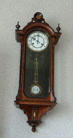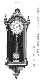 意匠登録6367号は服部金太郎が明治44年1月27日出願、同3月29日登録「パリー スリゲル」と登録しています。又明治43年服部時計店営業一覧には未載で44年服部時計店営業一覧に初めて出てきますので、間違いなくこの手のユンハンス写しの2週間巻きスリゲル、座敷時計は明治44年からの発売です。