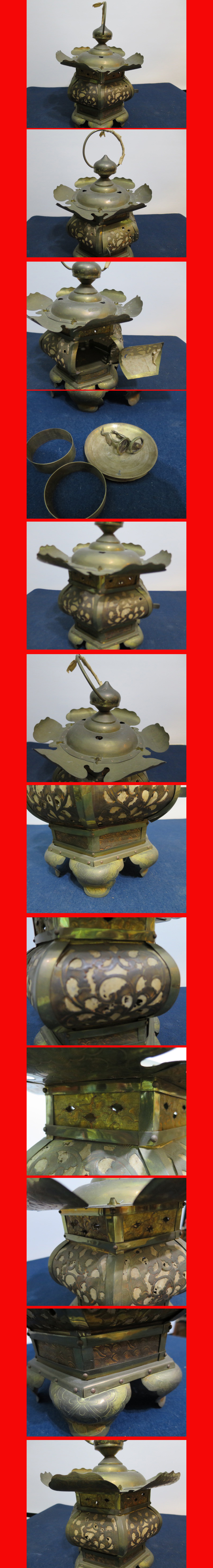友箱入りの黄銅吊灯篭です。(箱の蓋が御座いません。) |